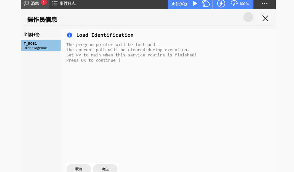 创建新负载数据点击 “新建”,为当前负载命名(如 “Gripper_10kg”),然后选择 “负载识别” 功能,系统会提示确认负载已安装。