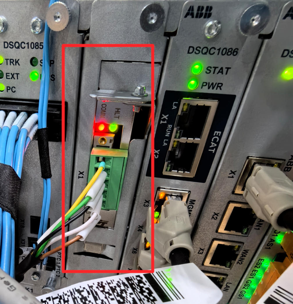 适用于:主机箱为DSQC1095的OmniCore控制柜 DeviceNet single ch. 选项为[3029-1] 参考V400XT控制柜,DeviceNet总线板卡在主机箱内为A2.K2,红色方框标出位置如下图: