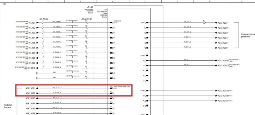 DeviceNet总线缺少24VDC电源。 查找图纸,电源可以从A2.K1.x19上引出,详细图纸内容如下: