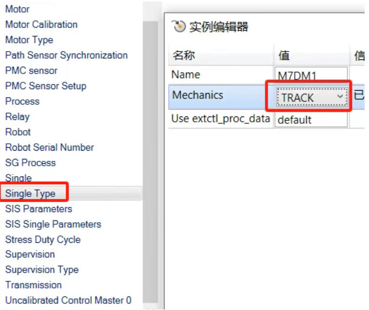 5.进入如下界面:配置-motion-single type,修改Mechanics类型为Track