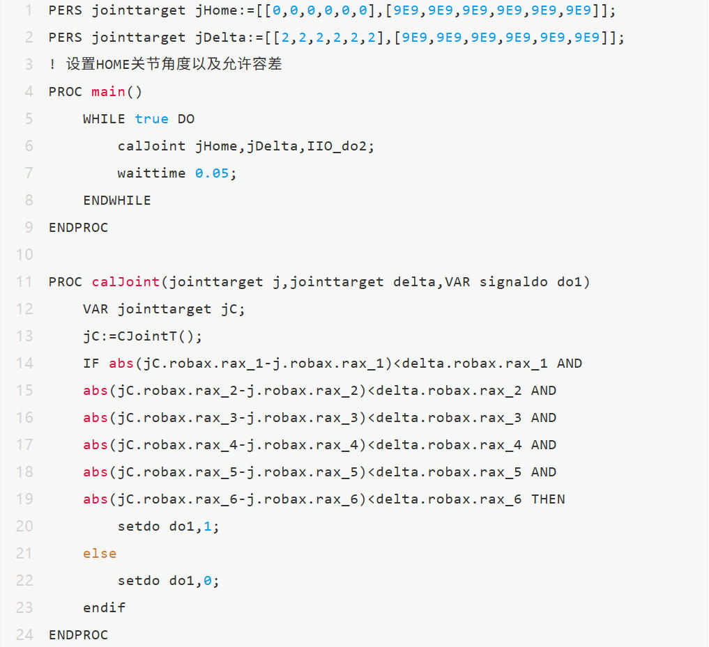 WorldZone功能为ABB机器人推出的,监控当前TCP位置和关节位置的功能。主要包括:1. 可以设置例如立方体,圆柱体,球体等区域,设置当前TCP在区域内或者在区域外,输出信号2. 设置机器人HOME点关节角度及容差,当机器人在HOME点,输出信号。详细功能,可以参见ABB机器人 控制器软件手册 3106-1选项介绍