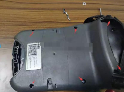 撬开2 个橡胶塞,拆下后壳6 颗十字螺丝。